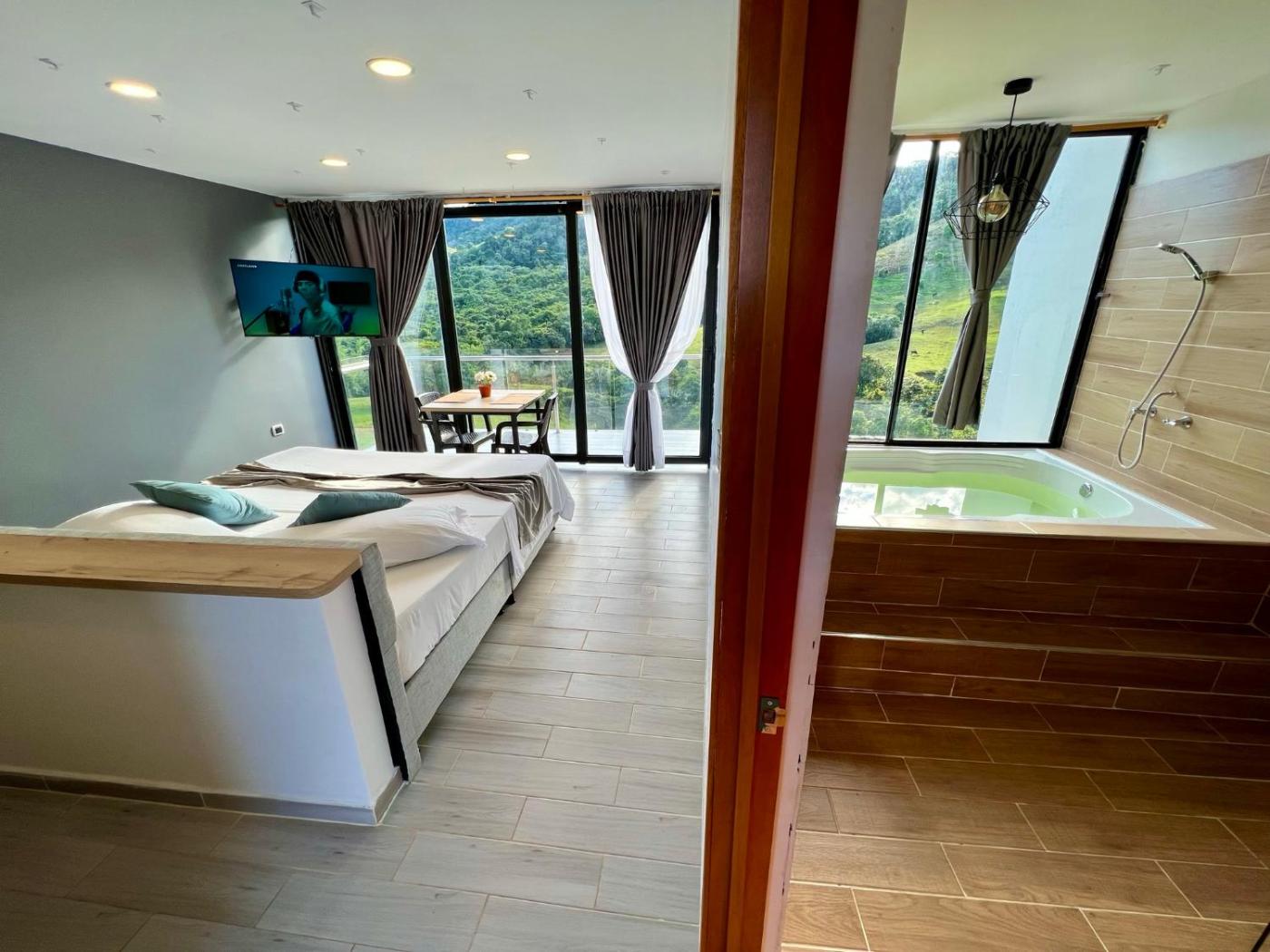 Suite with Mountain View. This suite features a pool with a view. This suite features 1 living room, 1 separate bedroom and 1 bathroom with a bath and free toiletries. The air-conditioned suite features a flat-screen TV with streaming services, a minibar, a tea and coffee maker, a seating area as well as mountain views. The unit has 1 bed. ;