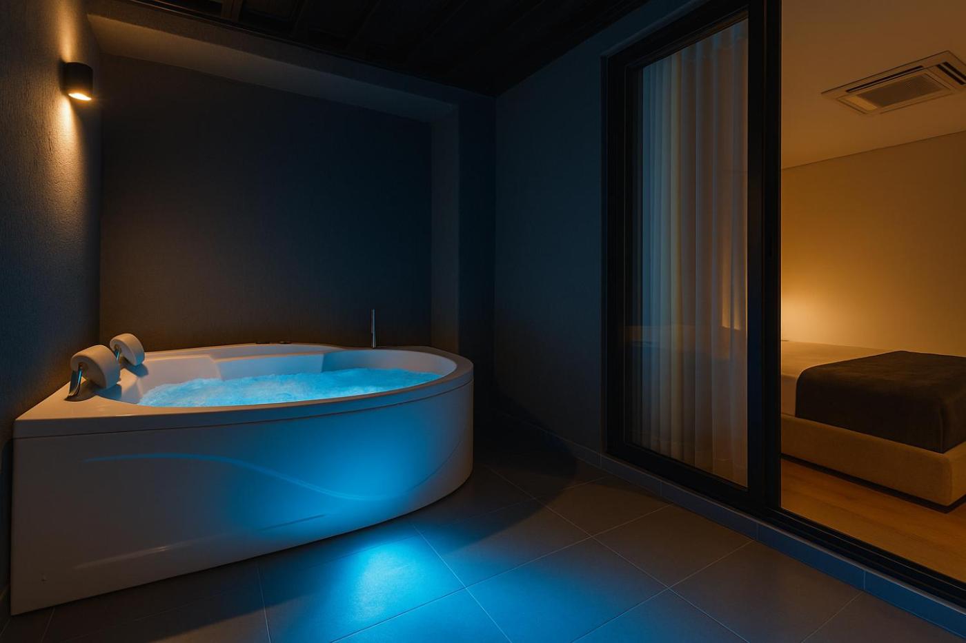 One-Bedroom Deluxe Apartment. The hot tub and spa bath are the special features of this apartment. This apartment comes with 1 living room, 1 separate bedroom and 1 bathroom with a shower and free toiletries. The well-fitted kitchen features a stovetop, a refrigerator, kitchenware and a microwave. This apartment is air-conditioned and has a seating area with a flat-screen TV, a washing machine, soundproof walls, a tea and coffee maker, as well as a dining area. The unit has 3 beds. ;